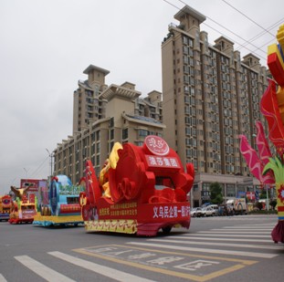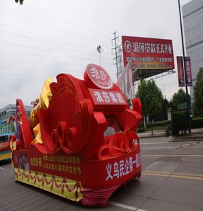 圖為浪莎集團彩車隨開發區車隊參加巡展。